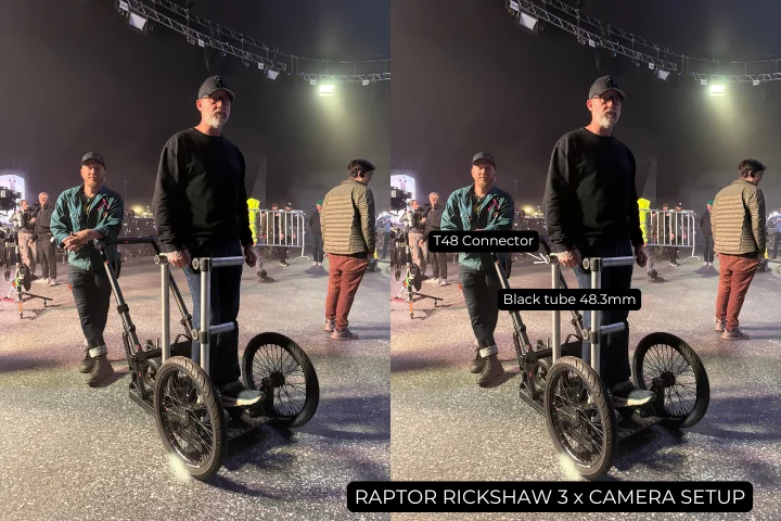 The Raptor Trike is an electric-powered upgrade inspired by the Raptor Rickshaw 3. Designed to enhance mobility for Steadicam operators, it offers a faster, safer, and more energy-efficient way to get the shot.