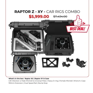 It is custom-designed to remove High-Frequency Vibrations & Dampens Low-Frequency Oscillations when shooting from moving platforms on rough terrain or paved roads. A finely balanced system of adjustable springs and hydraulic dampers give you a stable platform to achieve perfect results. - Raptor XY absorbs pulsations in the X and Y horizontal axis. Smoother shots without disturbing vibrations are the result.